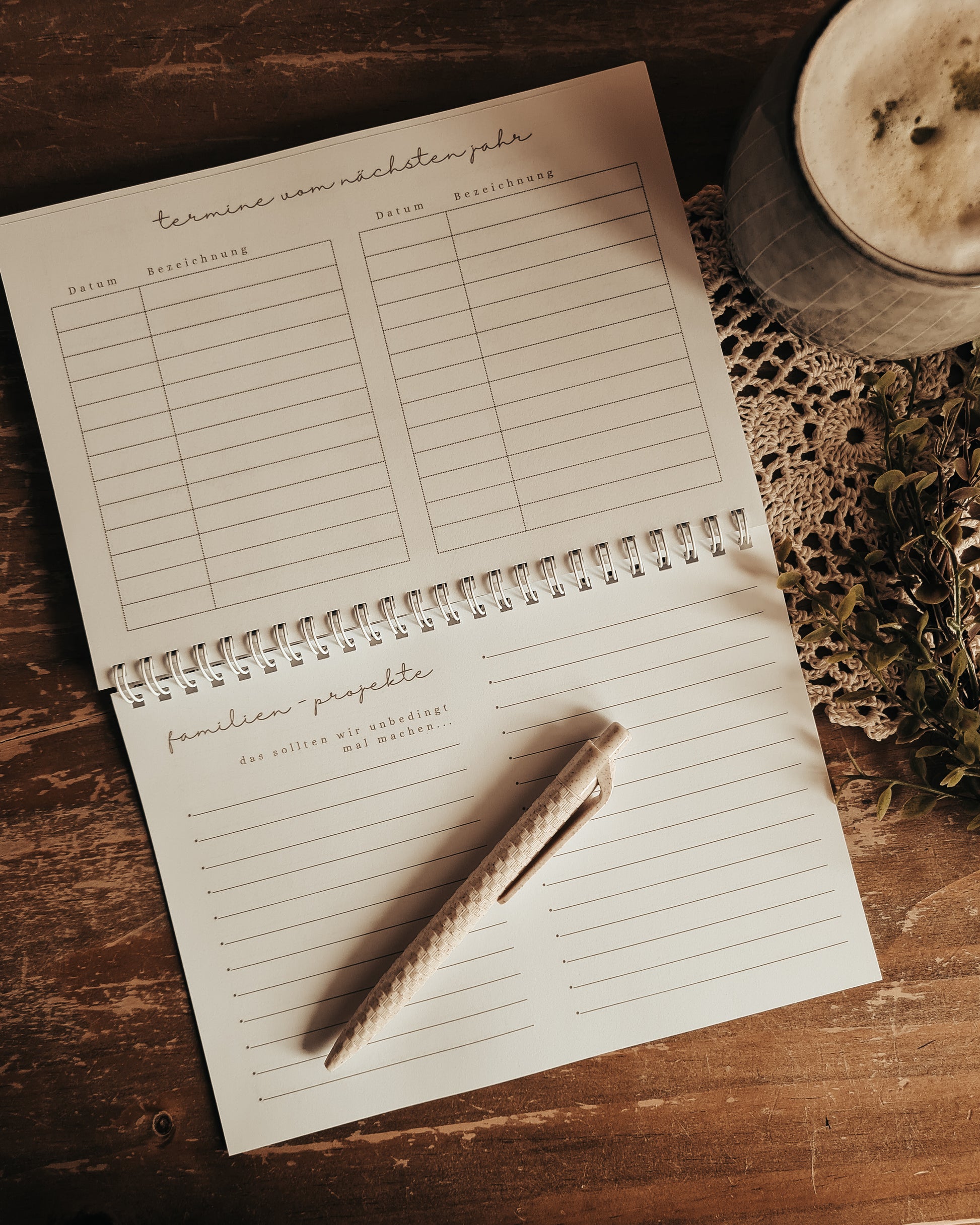 Raum für Ideen & Pläne: Im Anhang hast du Gelegenheit, all deine Ideen und Pläne festzuhalten. Familienprojekte, eigene Projekte, Gedankensammlungen, Glücksmomente und Geschenkideen haben hier ihren Platz.